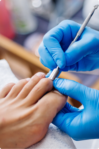 Cuidados com a saúde dos pés, incluindo tratamentos para unhas encravadas, calos, rachaduras, micose e pé diabético. Alívio da dor e prevenção de problemas nos pés.